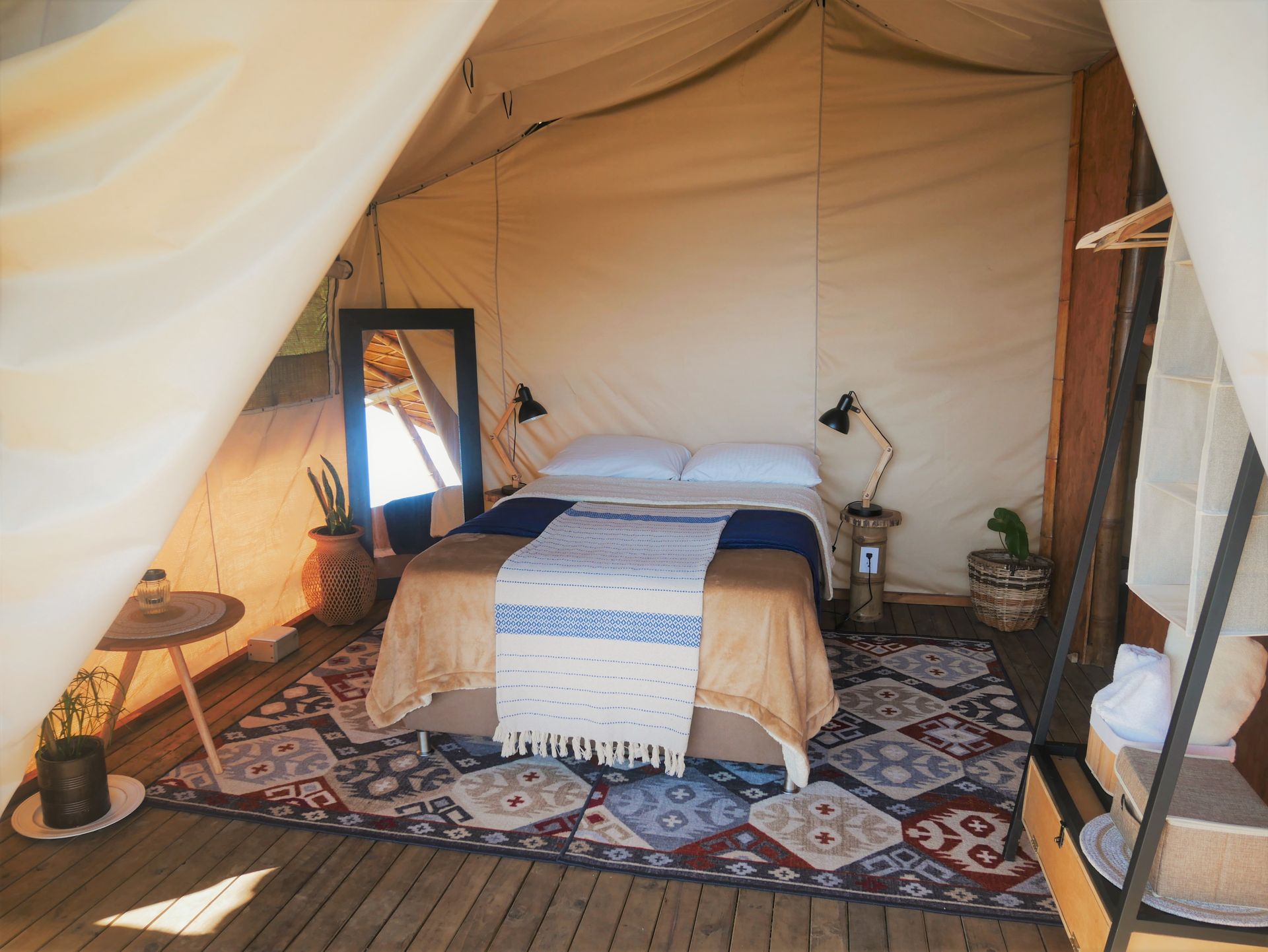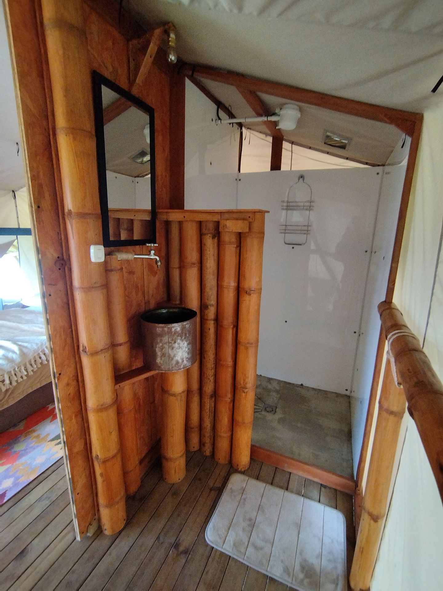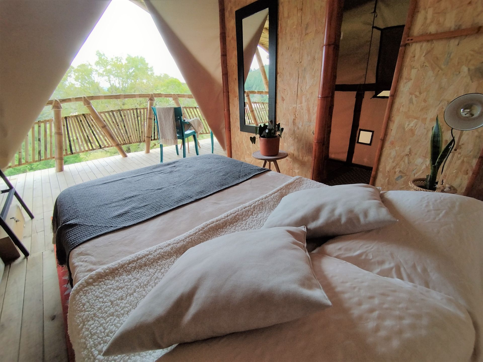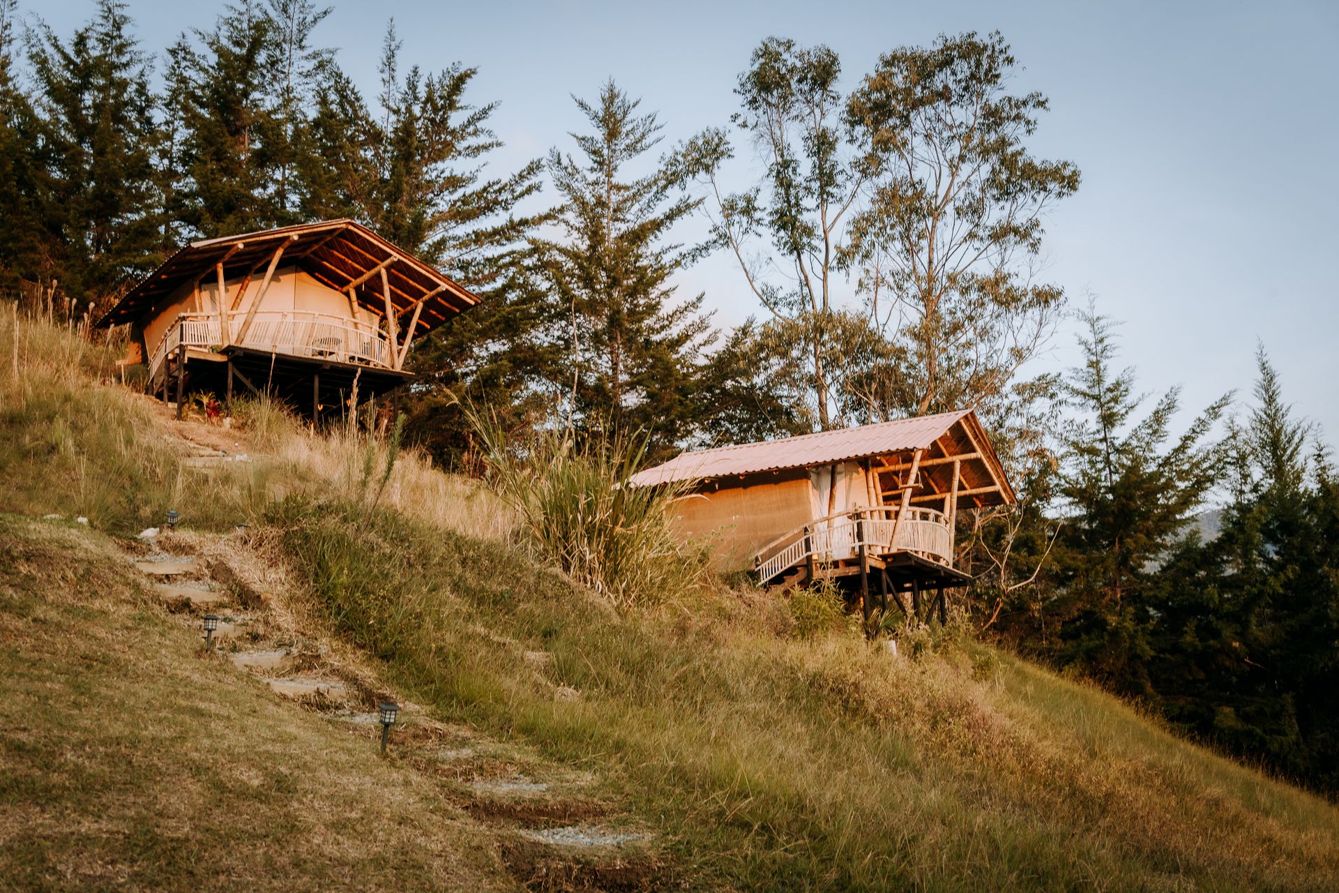 Mejore su estadía en Casa Kayam con nuestra experiencia de glamping única. Ubicadas en la cima de la colina, nuestras cabañas de bambú brindan una perspectiva única de la icónica Roca de Guatapé. Sumérgete en la naturaleza mientras disfrutas de la comodidad de las comodidades modernas.