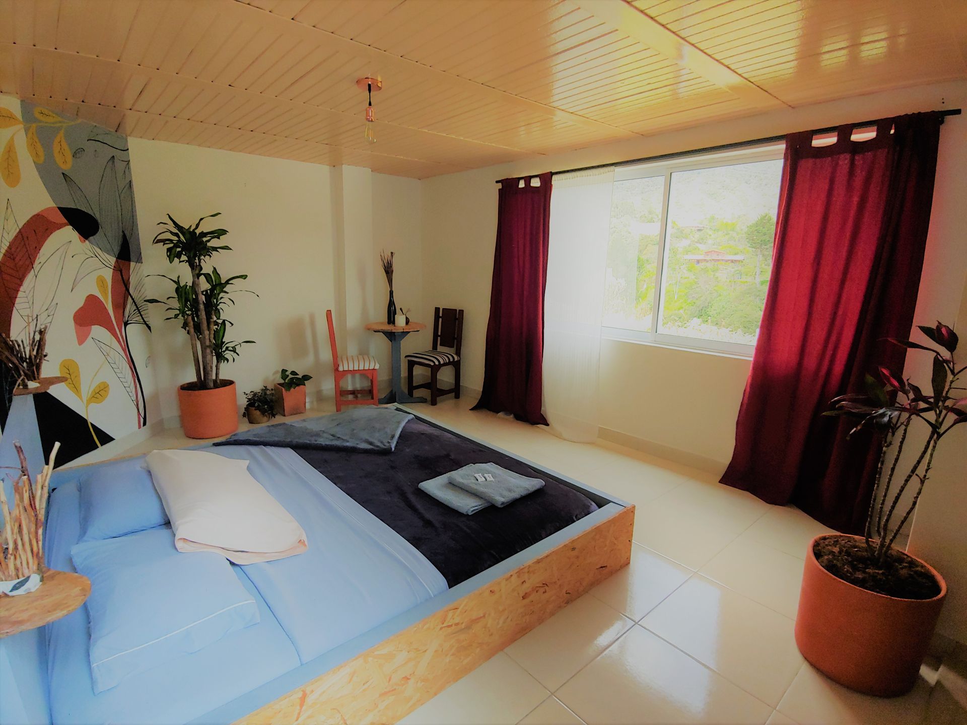 Disfrute de la serena belleza de Guatapé desde la comodidad de su habitación privada en Casa Kayam. Despierte con impresionantes vistas de la exuberante naturaleza, y algunas habitaciones cuentan con balcones para saborear su café matutino o el atardecer.